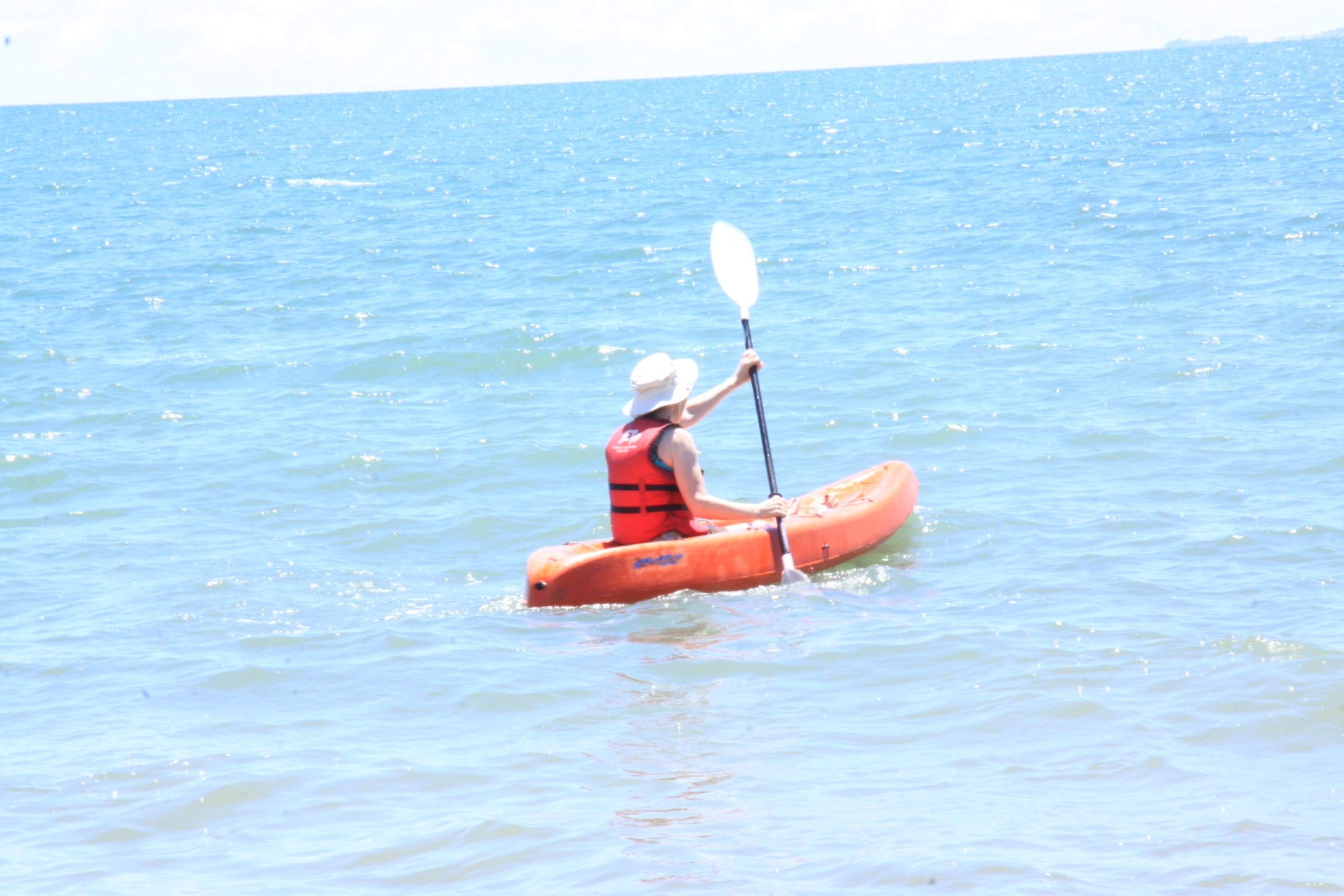 After another ice cream cone, we headed back, avoiding sales people as we went. It was 32 again (feels like 45), so we headed back out to the water. We kayaked a bit in the bath water temperature ocean: