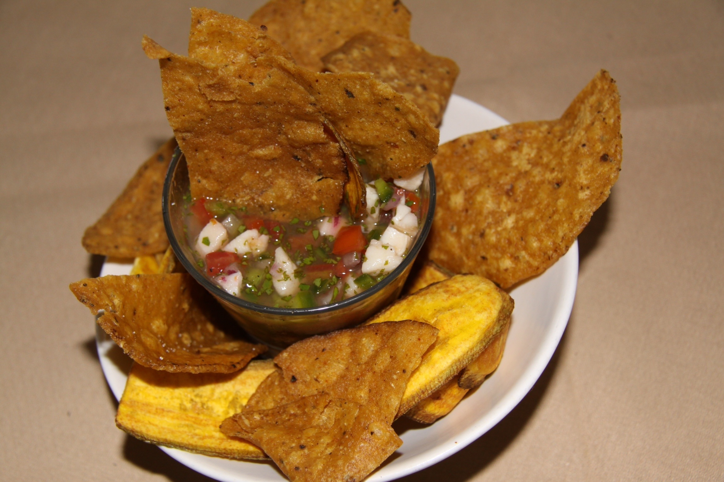 We started with a conch ceviche which was served with tortilla chips and deep fried plantain. It was SO tasty and had quite a kick from the hot peppers. Check our previous blog entry “Yes Chef” to see how it is made.