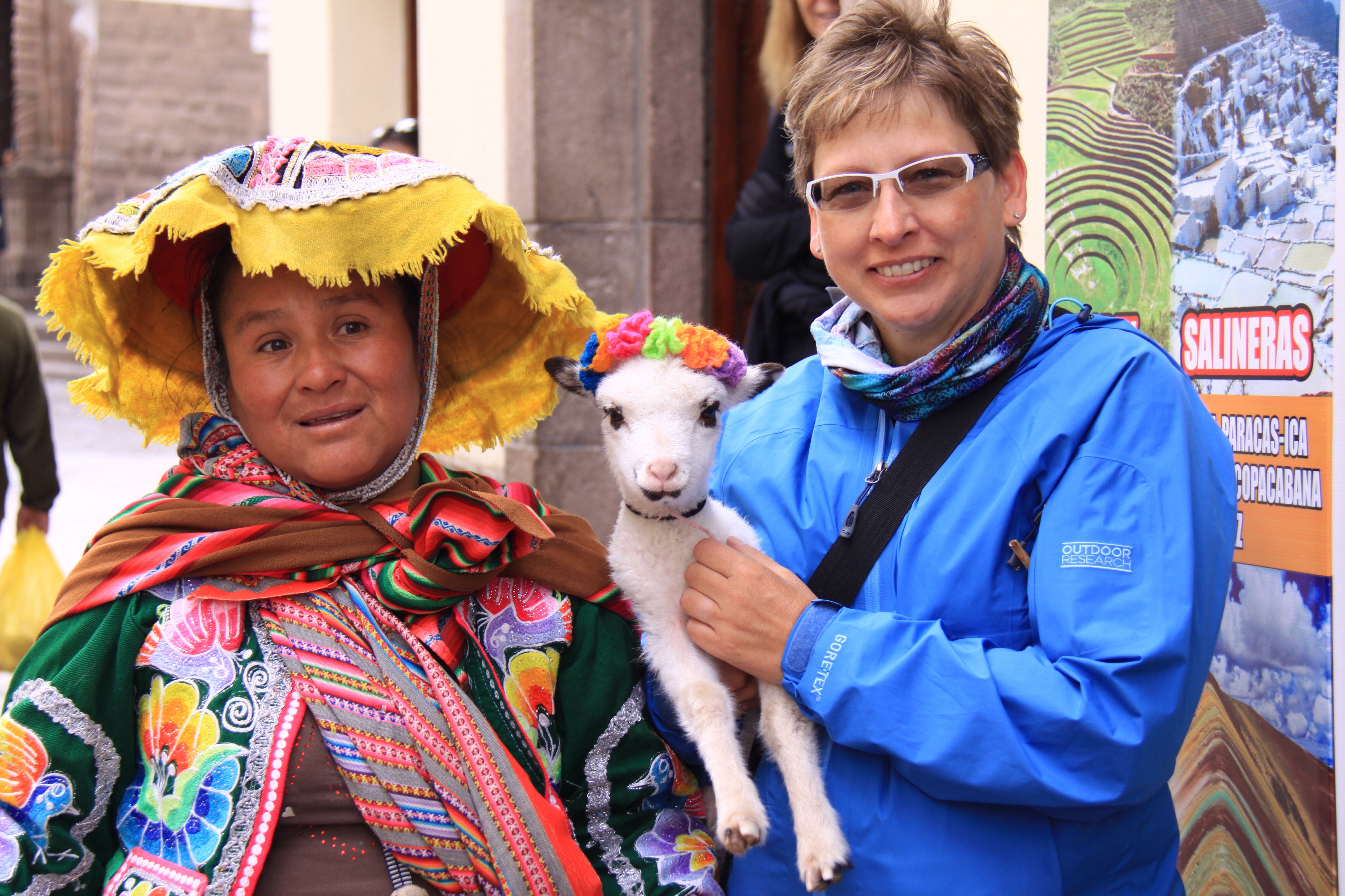 We headed down the 145 steps to our street and began the trek to the town center where we stopped at many merchants along the way who were hawking their wares. We enjoyed people watching as well. Chocolate and caramel stuffed churros were enjoyed for our morning snack. People encouraged us to have their picture taken with us, and then asked for money.