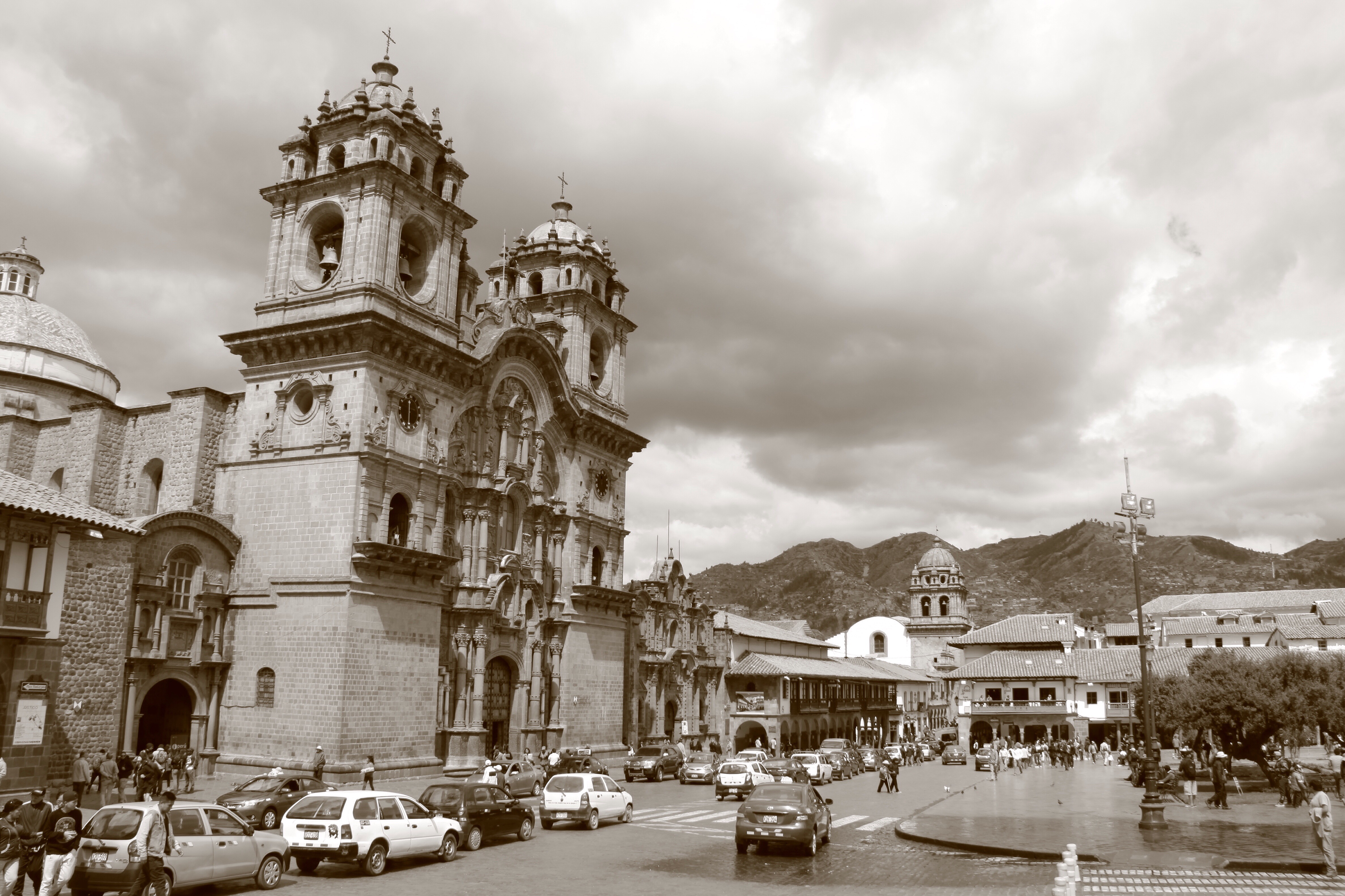 We met Bill and Tania back at the house where they had arrived in Cuzco from their Peruvian Amazon rainforest excursion and returned to the Plaza de Armas for a light lunch of tamales from a street vendor. This is one of the buildings near the plaza.