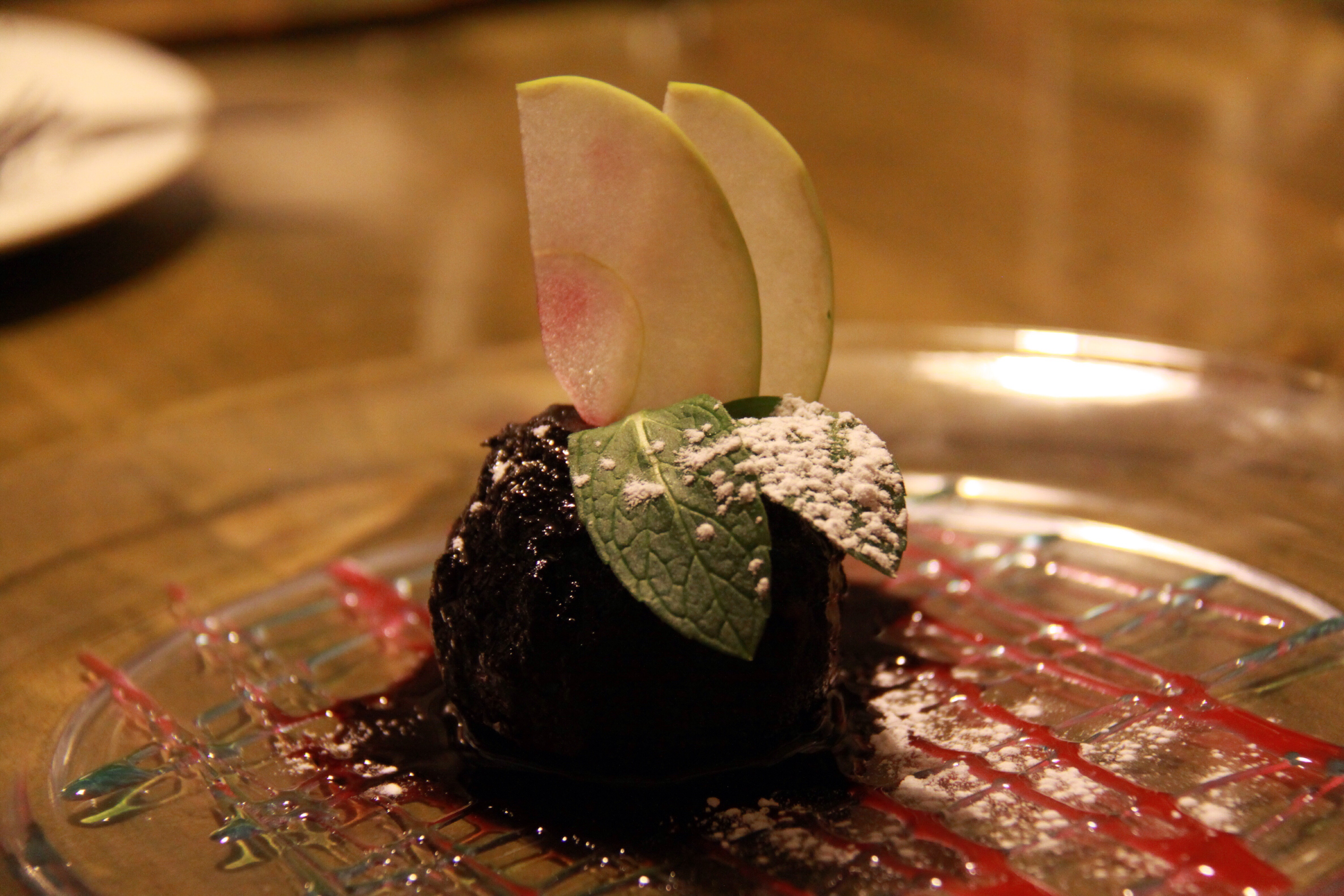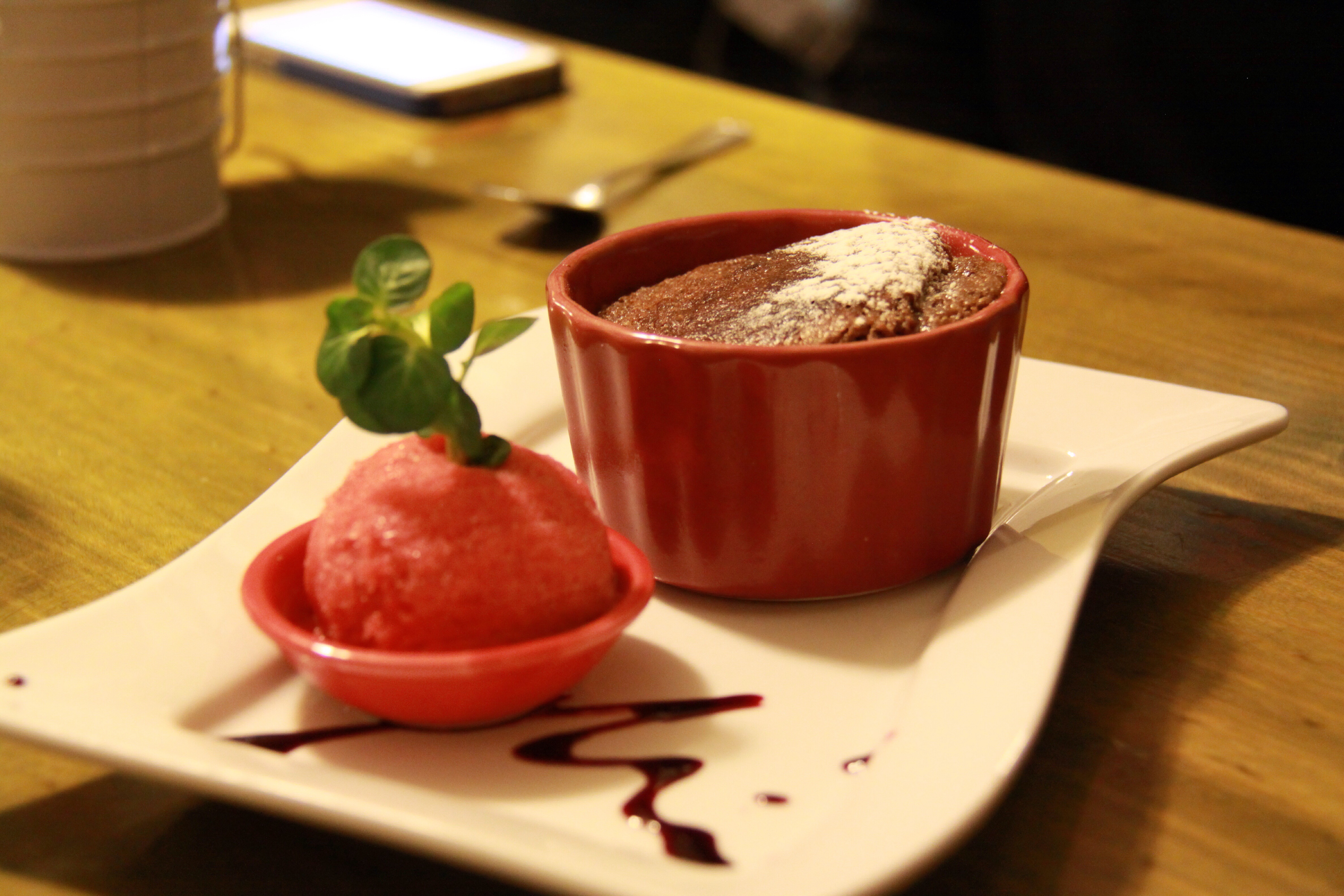 And their version of molten lava cake with strawberry sorbet