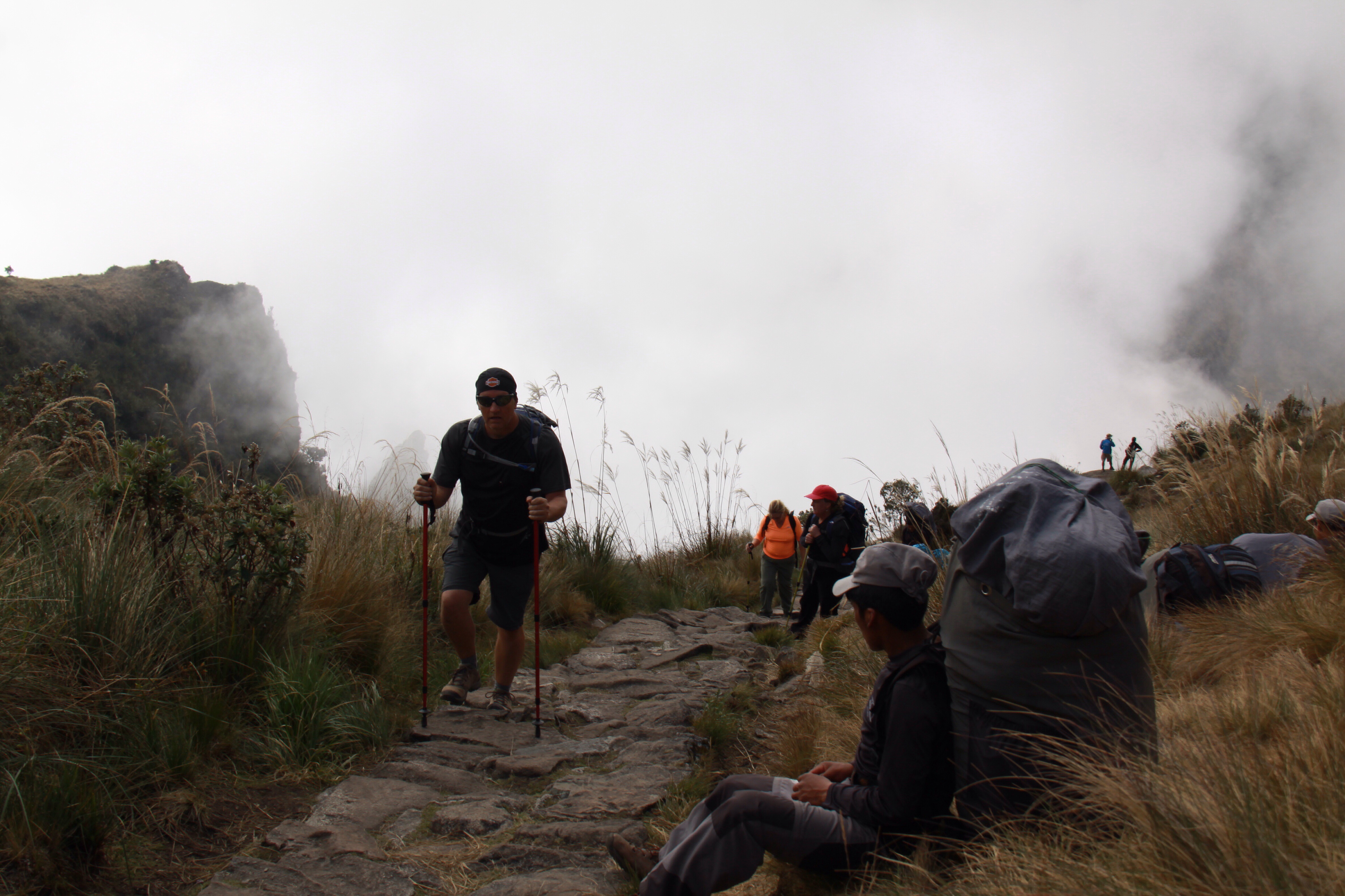 Our hike was 11.1 km today, and we had to hurry to get to our camp before sunset. It took us just under 11 hours including breaks, and we were 2972 feet lower than last night. The temperature change was quite noticeable. We said goodbye to our porters tonight as we will be up at 0345h tomorrow to finish the last leg of the trek, and they will carry our bags down to the village before they head home on the train.