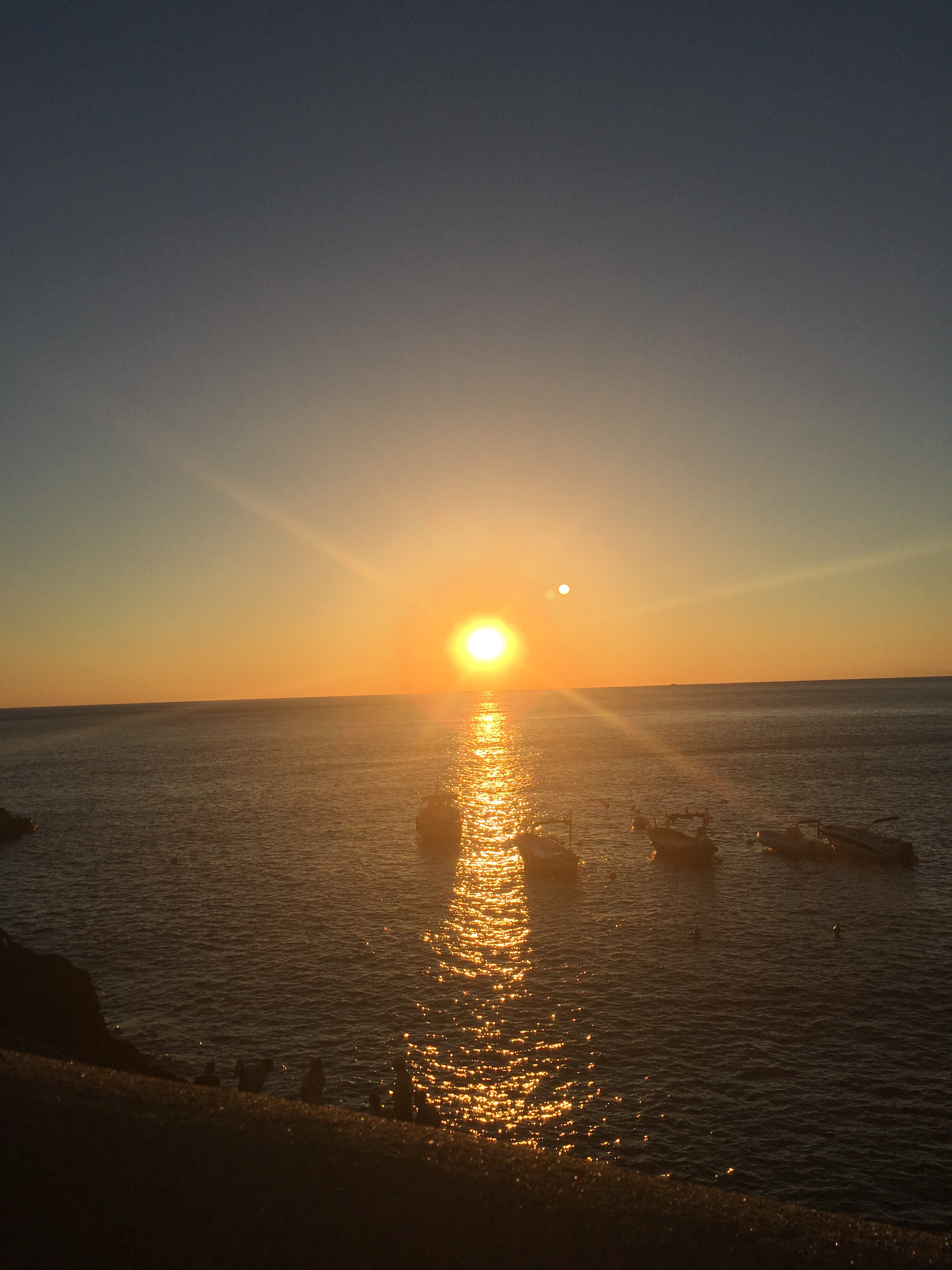 The last trail was also closed, so we took the train back to Manarola, village 4, to have supper and watch the sunset. We enjoyed deep fried squid and fries while sitting at the beach.