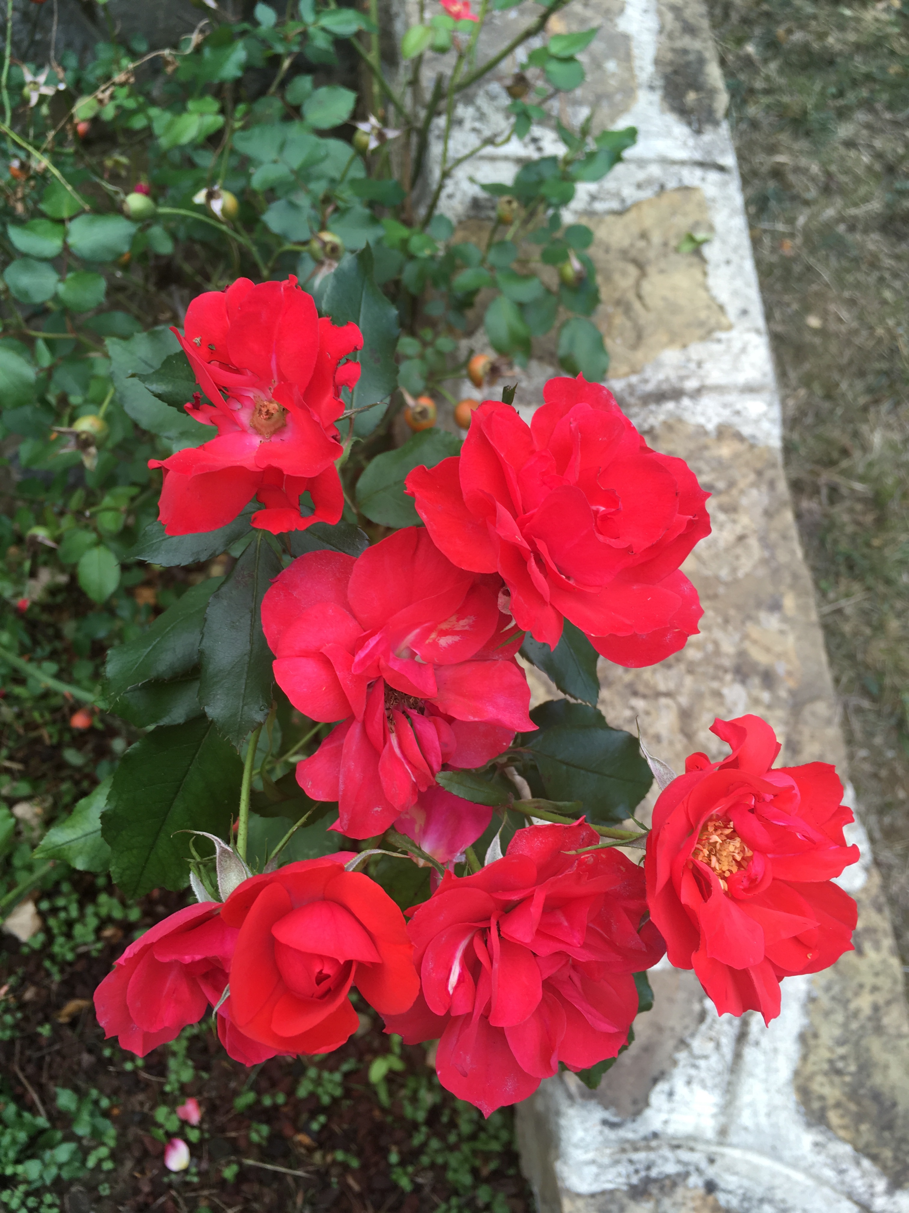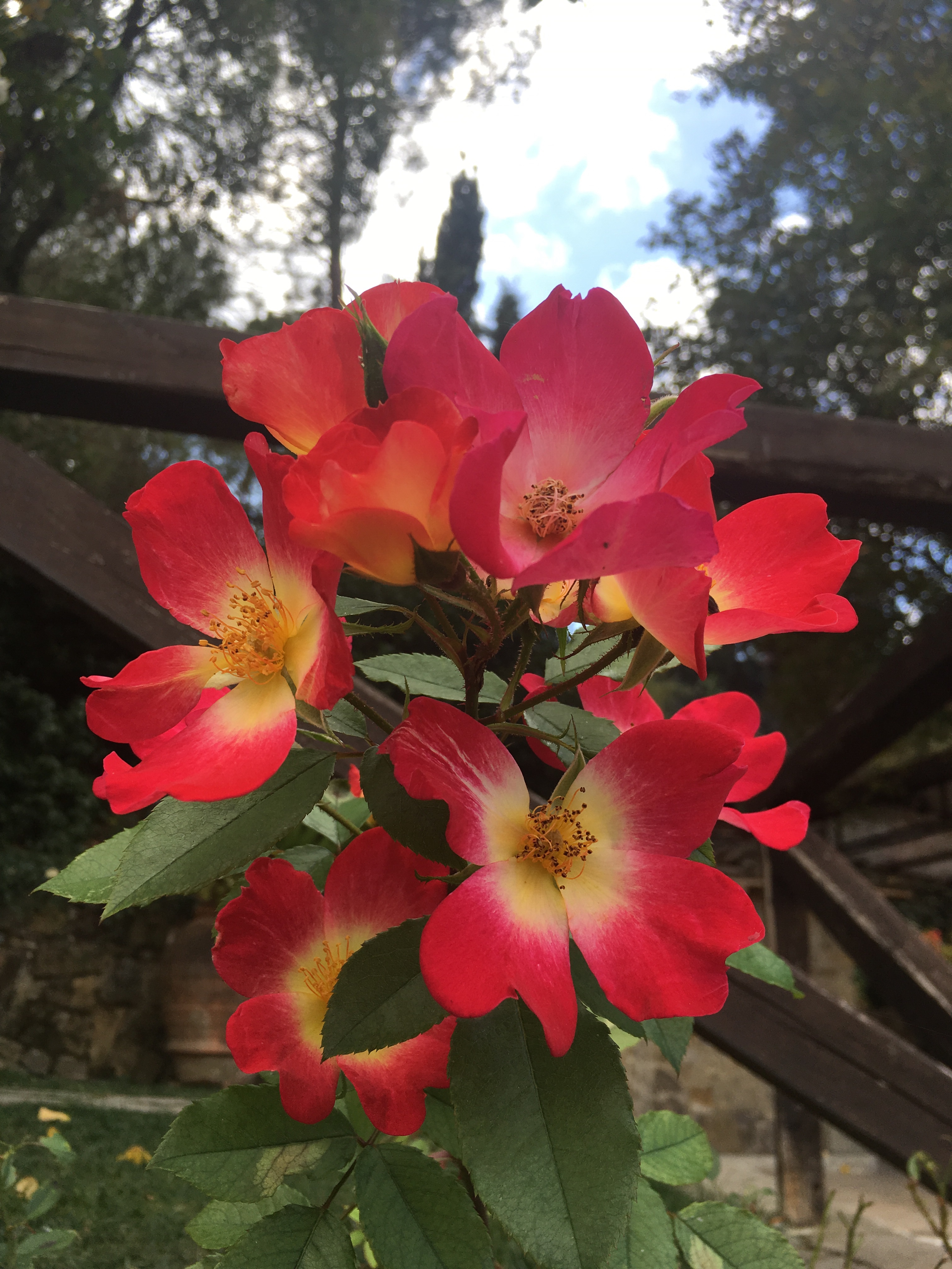 After checking in, we walked down to the town center and admired the scenery. Little shops were selling pastries, gelato, clothing, pottery, jewelry, and other souvenirs. We purchased some delicious pizza and enjoyed it on a bench by the water. After a dessert of gelato, we headed back up the mountain to our home for the next three days. Here is some scenery from yesterday’s Tuscany garden and today.