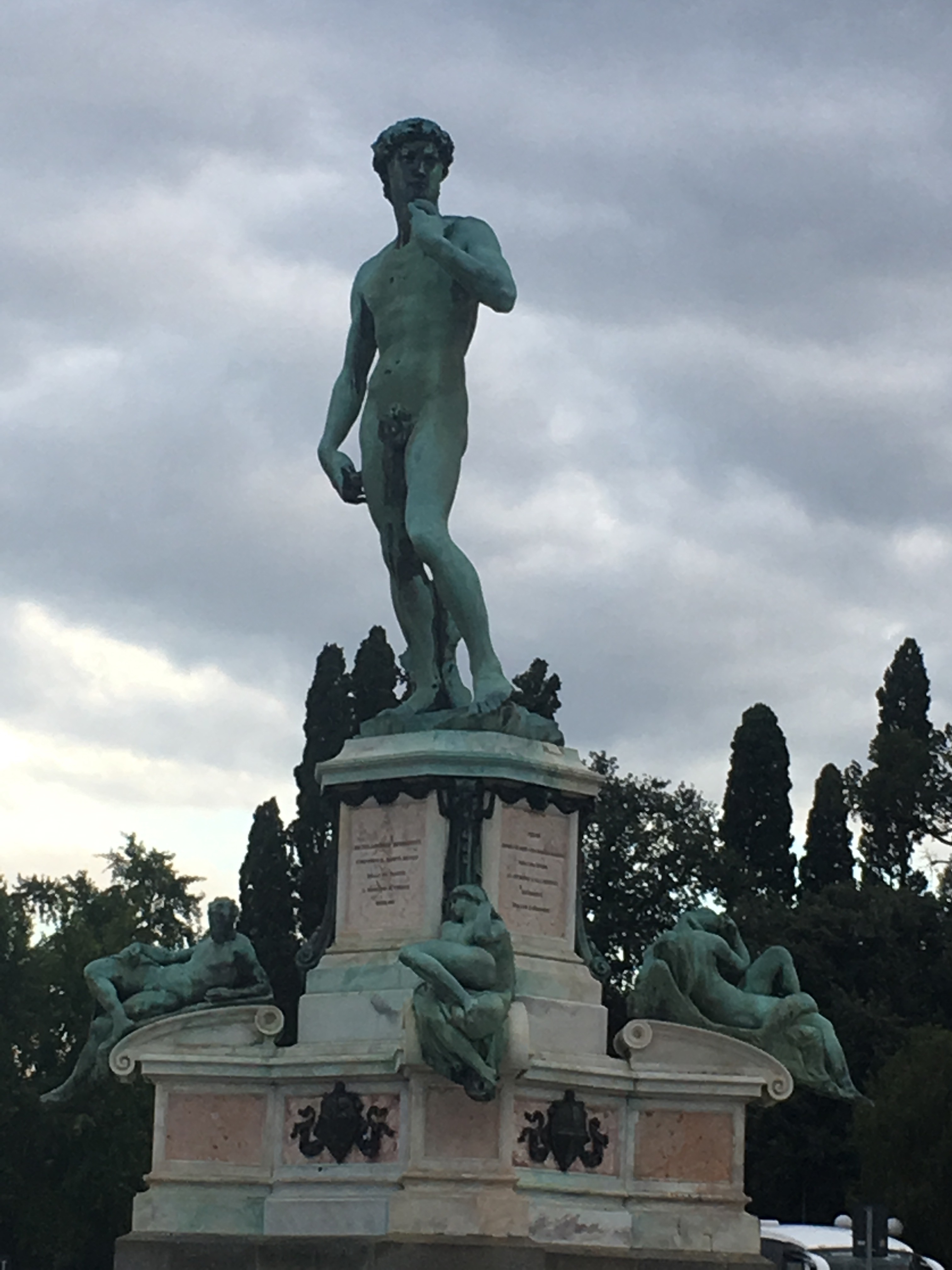 We had our bus driver drop us off at the edge of the city close to Michelangiolo Plaza where the replica statue of David stood in place of the real one.