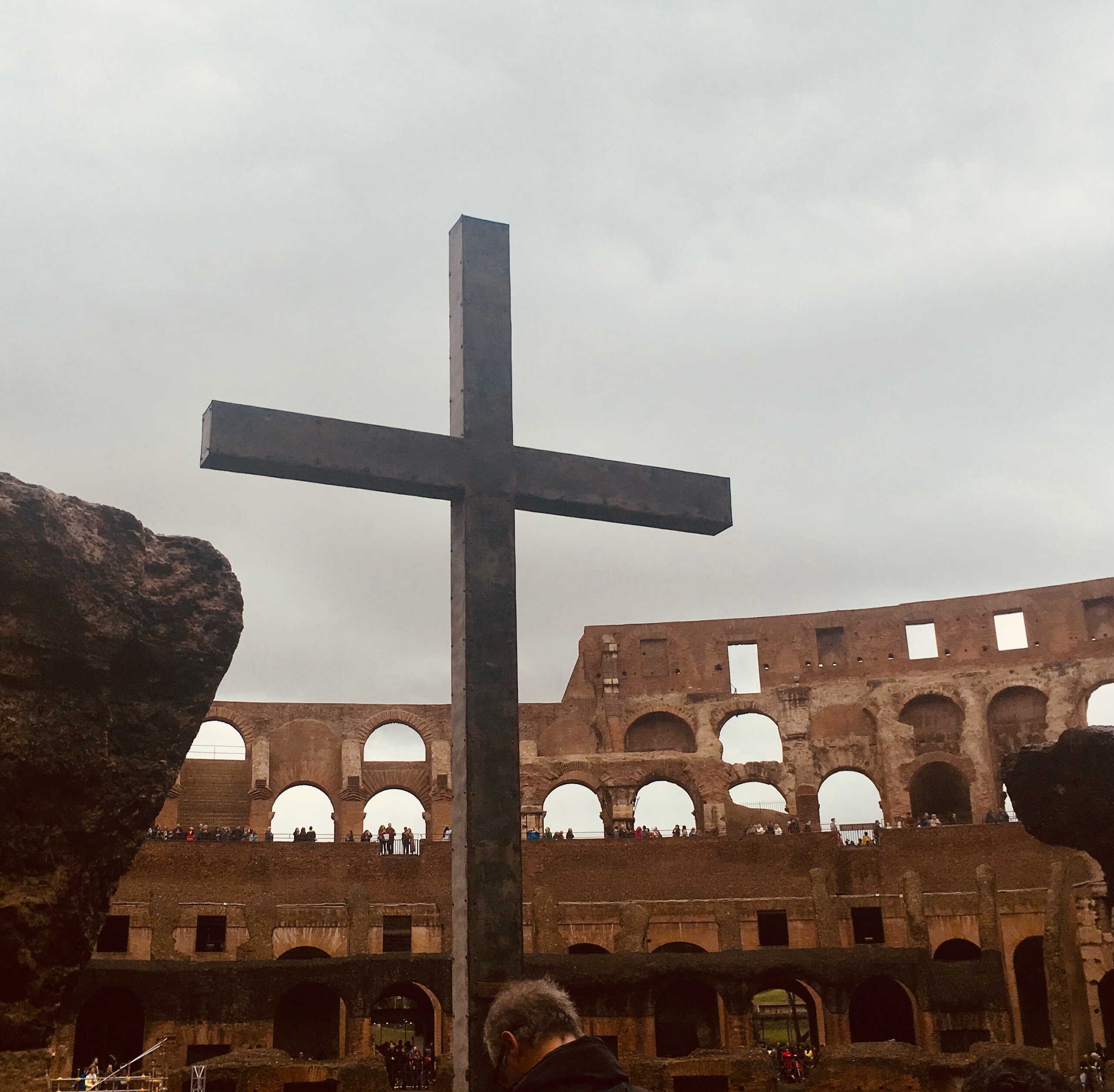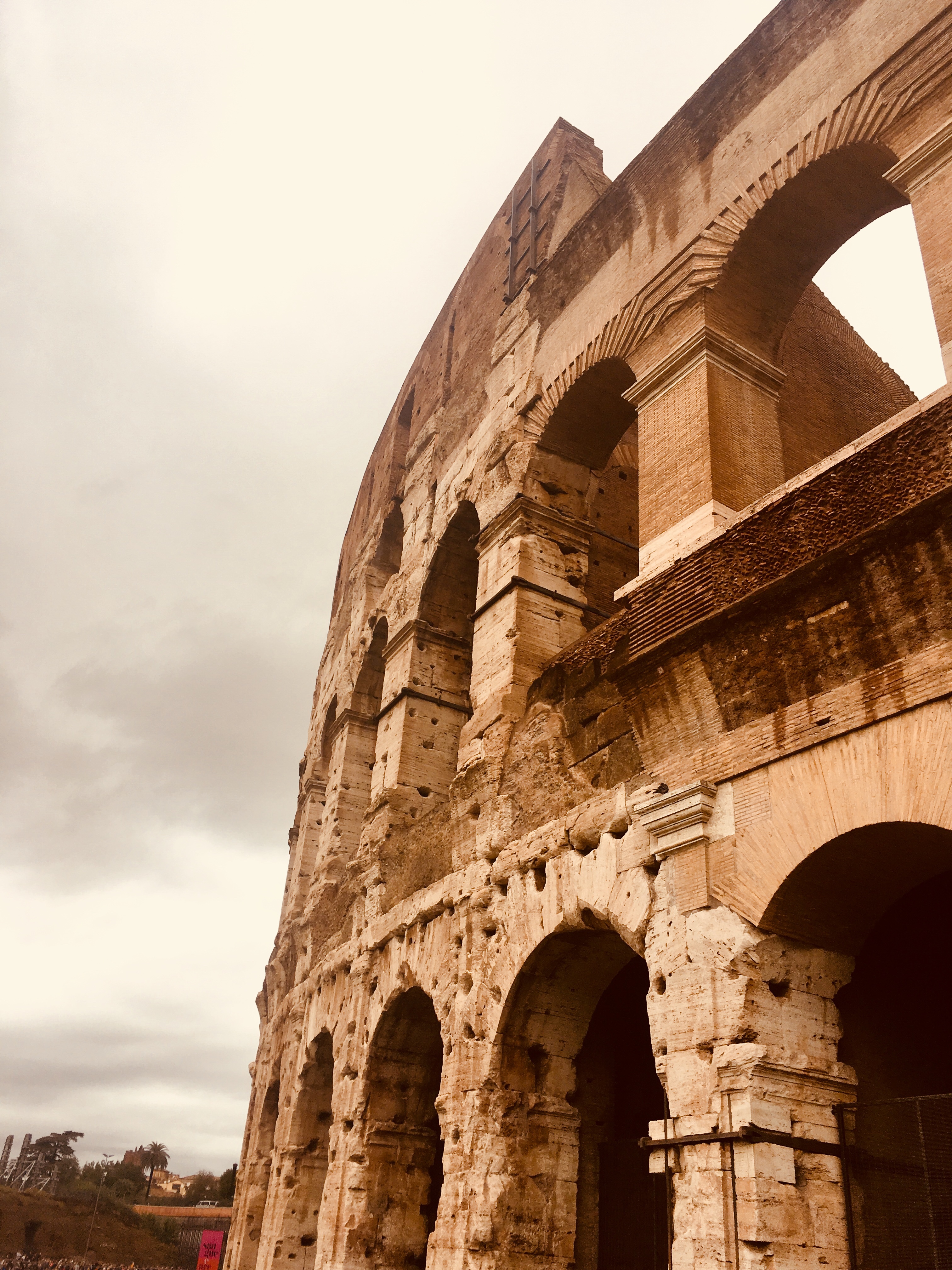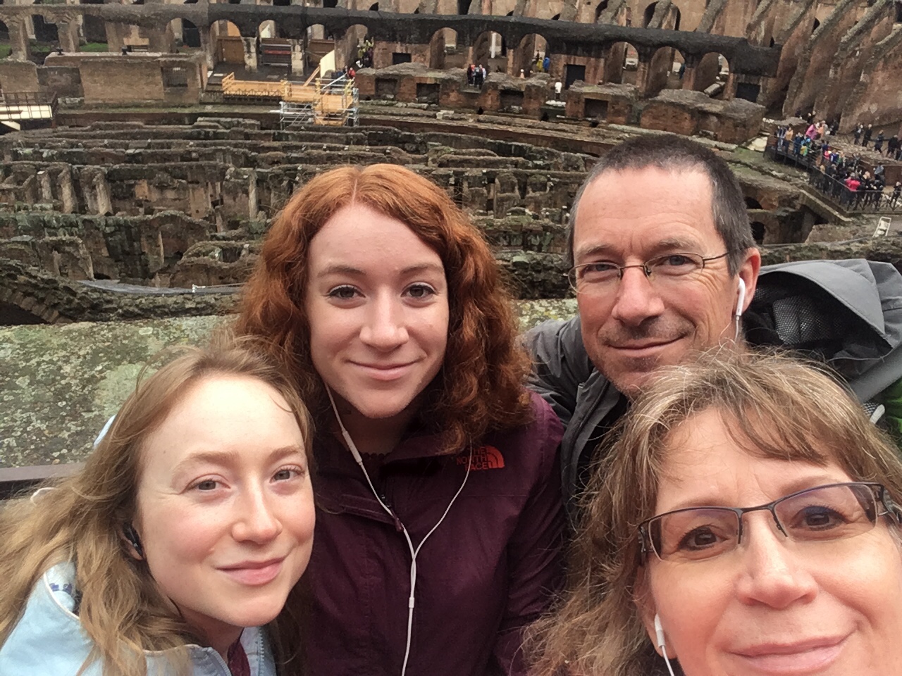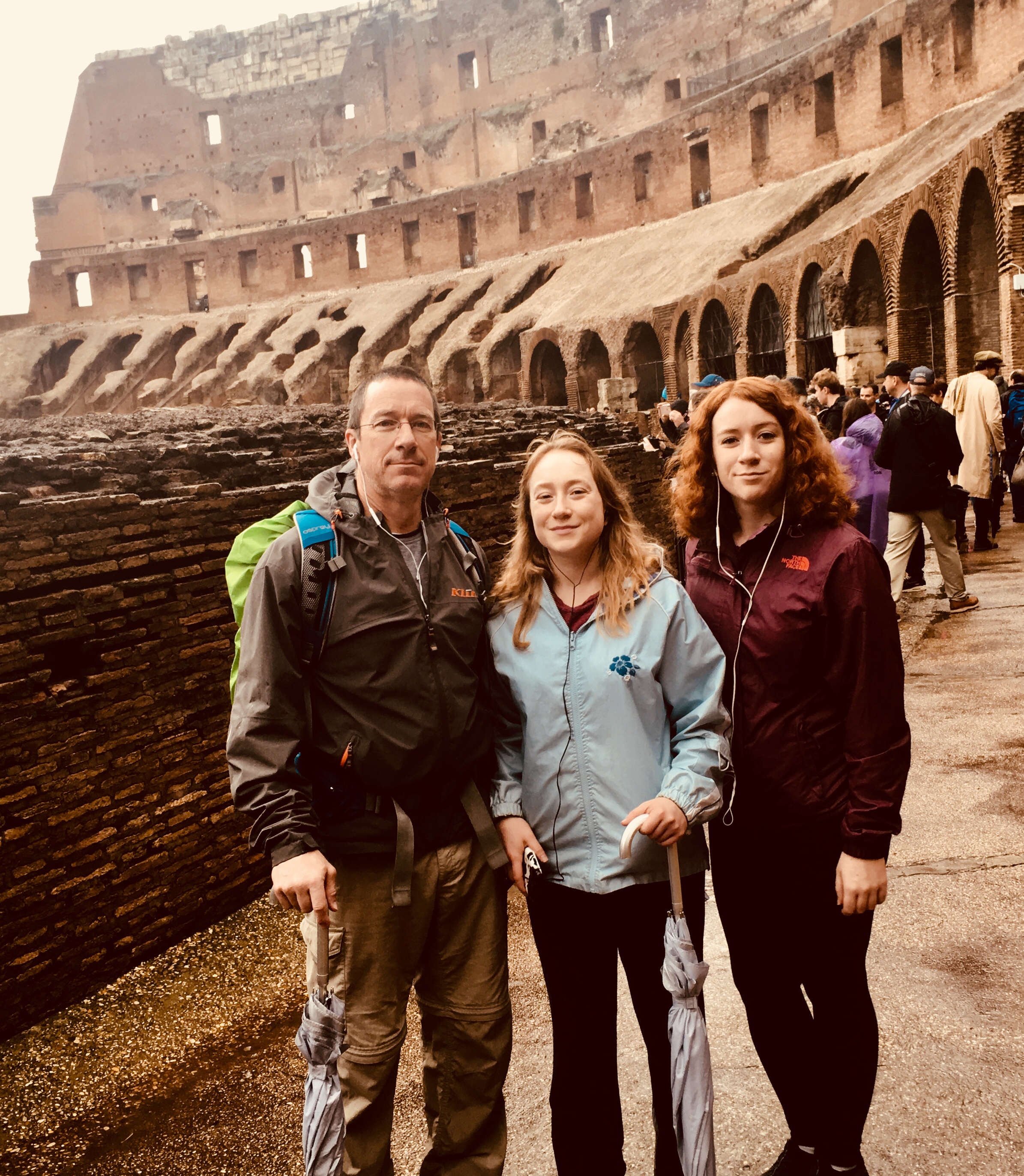 Instead of walking to the Colosseum, we took the metro to keep us a bit drier. I wondered if the rain would keep the crowds away, and thousands of others must have thought the same thing as they headed to the same place. After purchasing tickets and clearing security, we explored this colossal structure and listened to our audioguide.