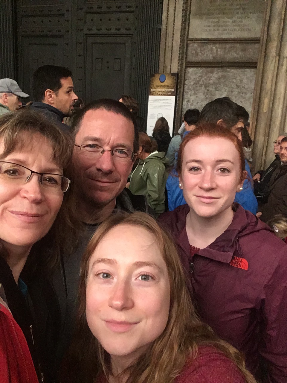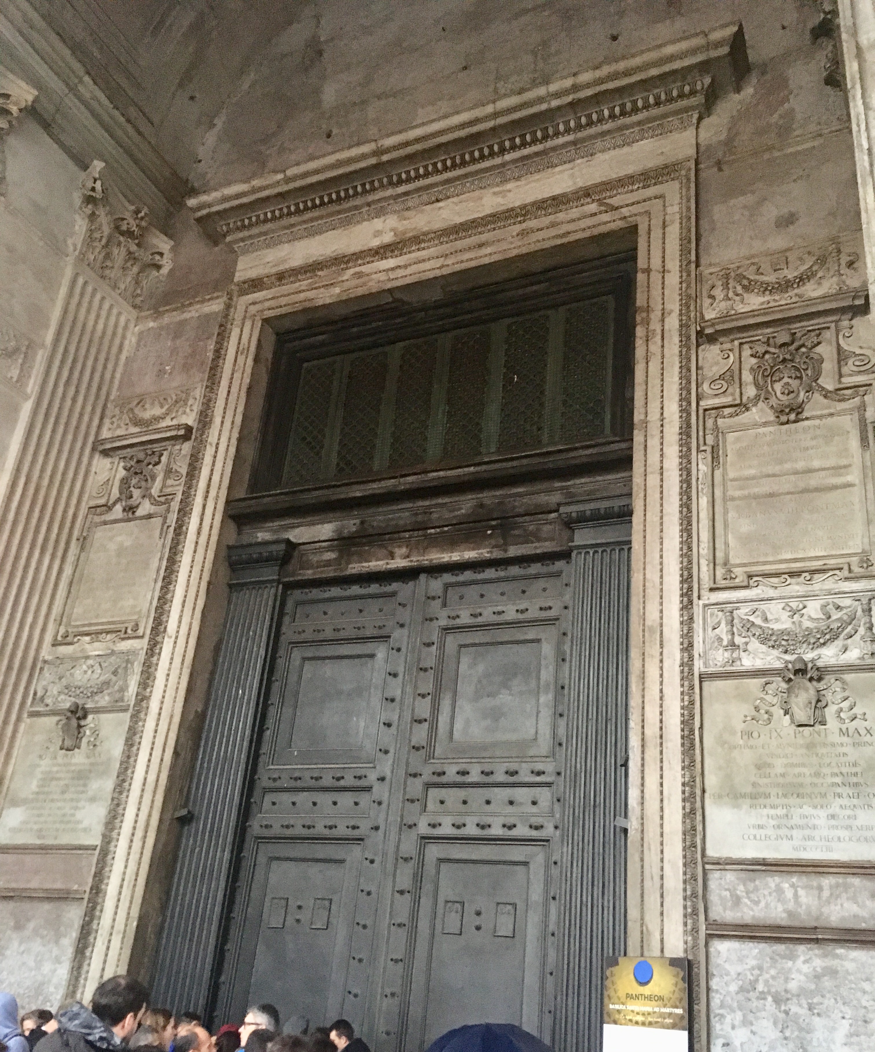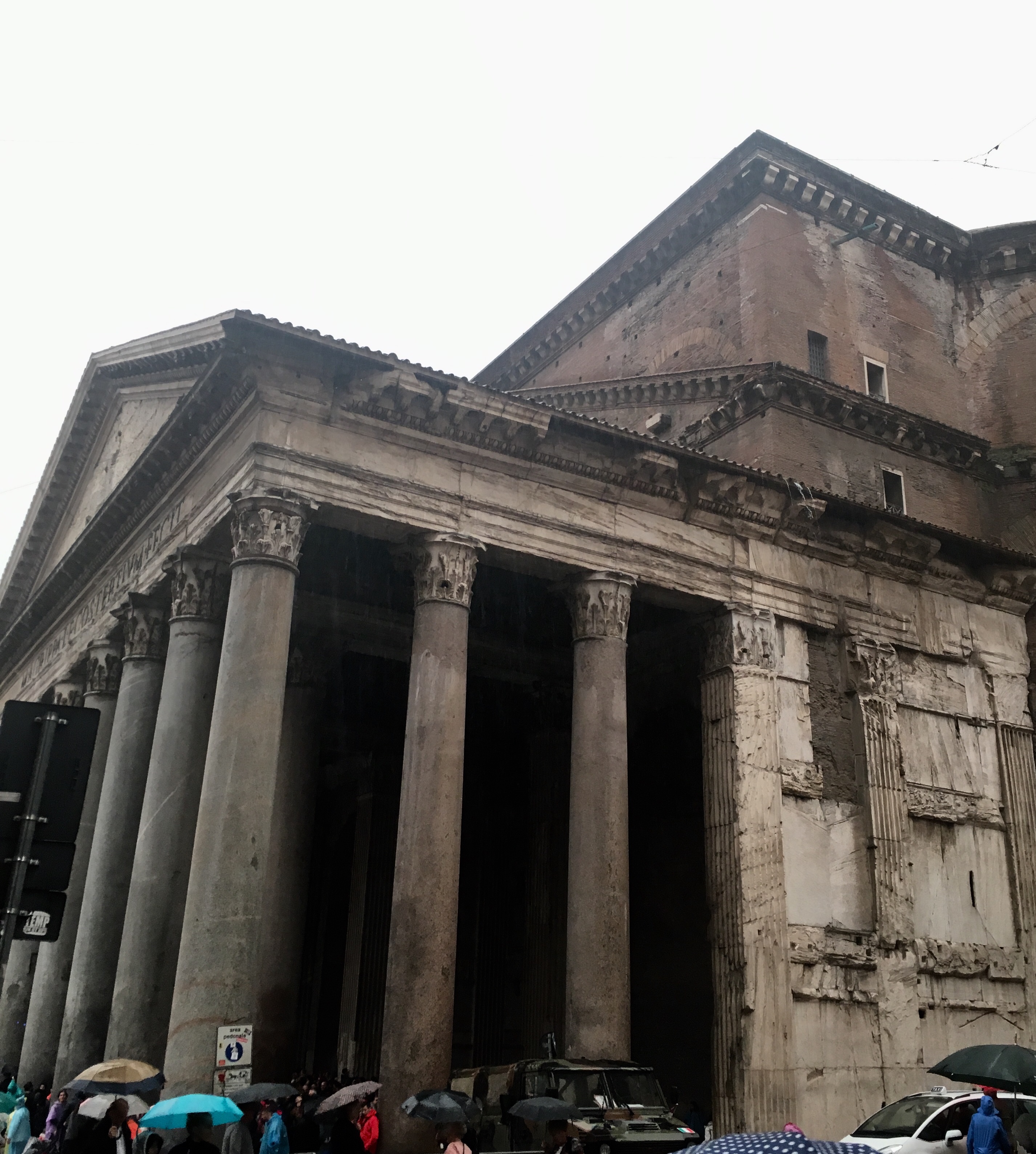 We strolled by the Tiber river in our way to see the Pantheon, a church which has been in use since it was built in 27 BC. Unfortunately, because of the holiday, it was closed, and the website did not indicate this. 😟. We were not alone…there were many disappointed people. We sat and listened to our audioguide while perched against a pillar and seeking shelter from the rain.