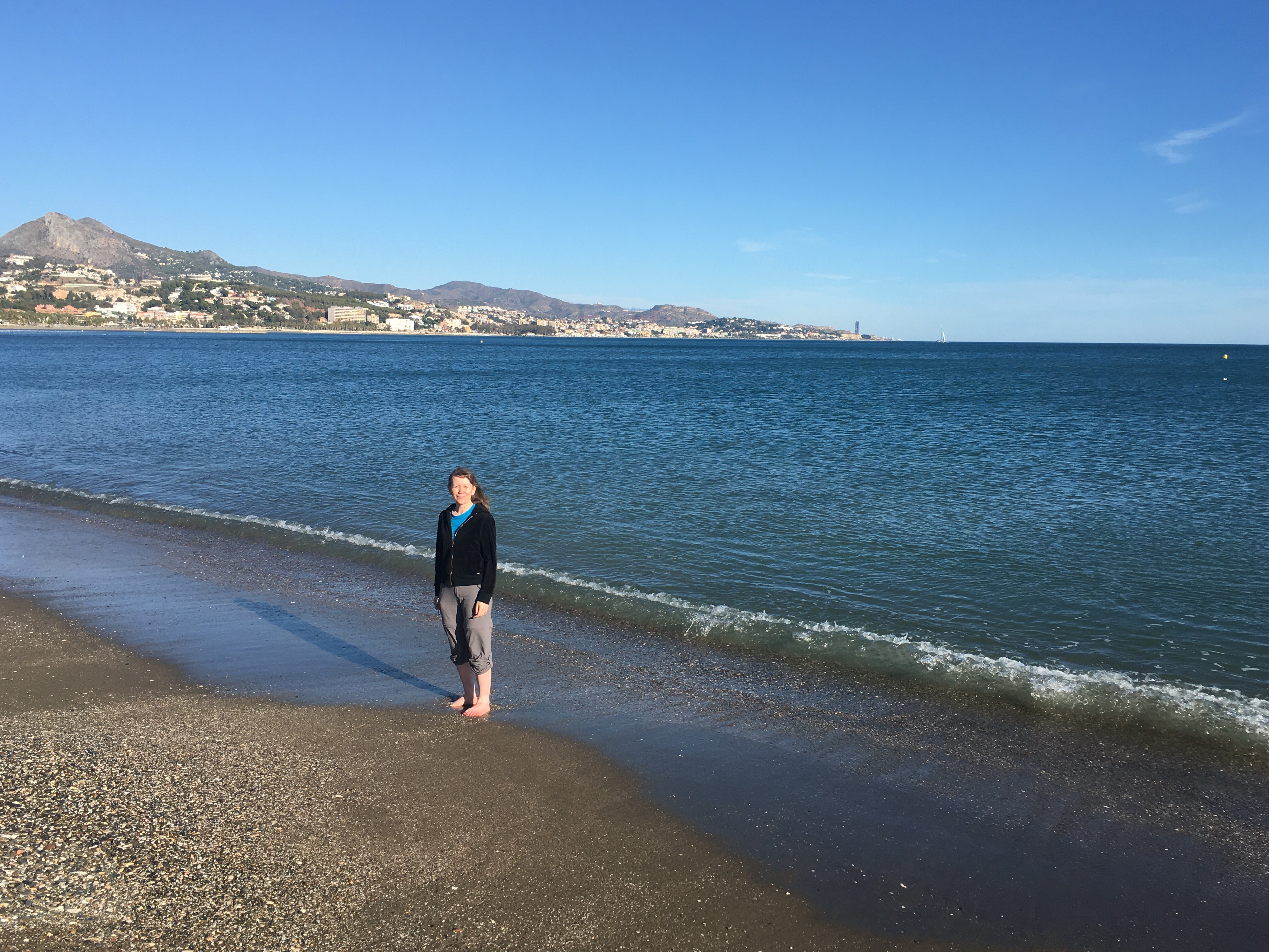 It is about 18 degrees and sunny, a gorgeous day in the Costa del Sol, a region in the south of Spain.
