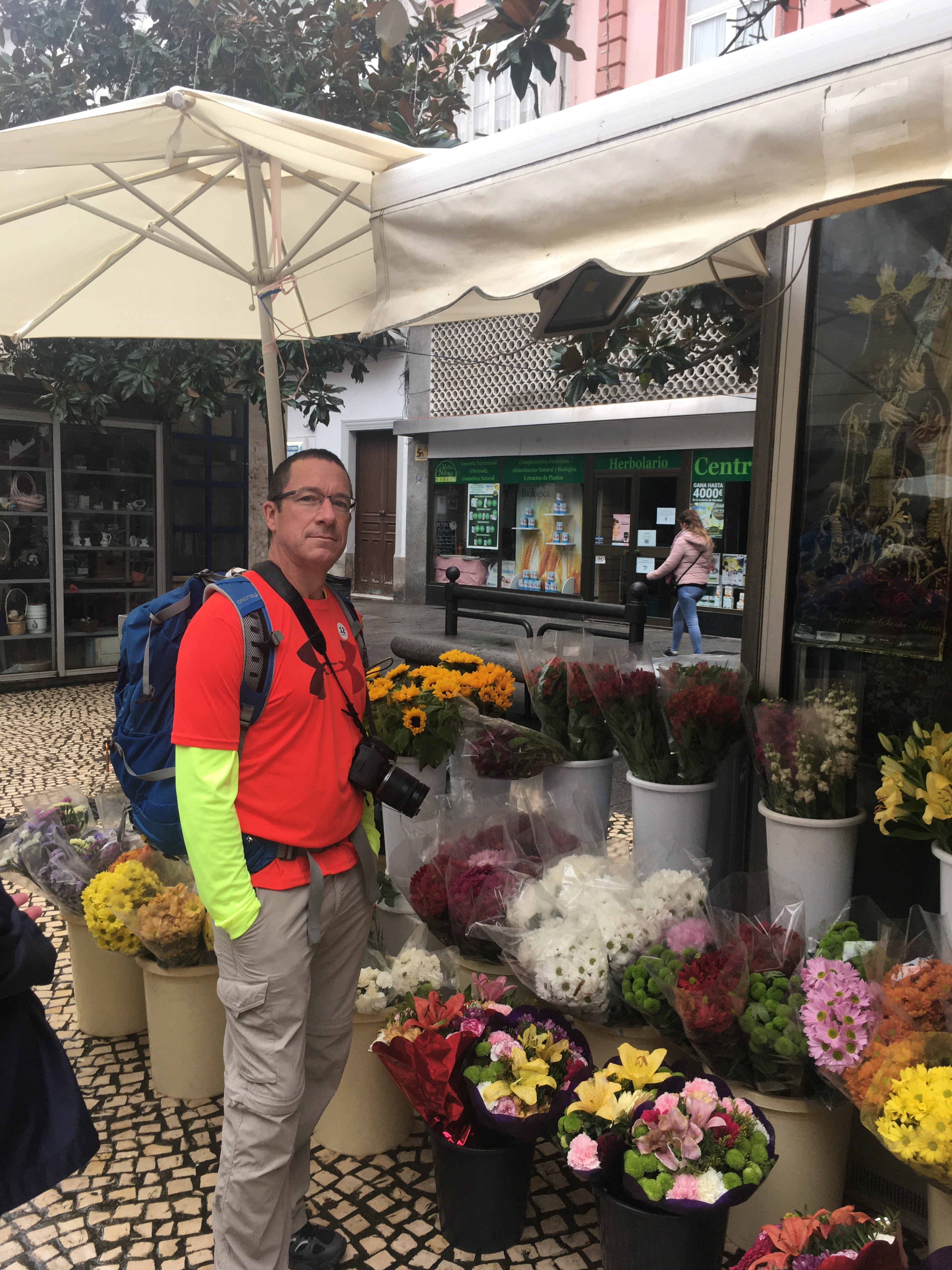 Gary is standing by the flower market, and we also had a chance to walk through the main market loaded with breads, meat, cheese, fruits, and vegetables!