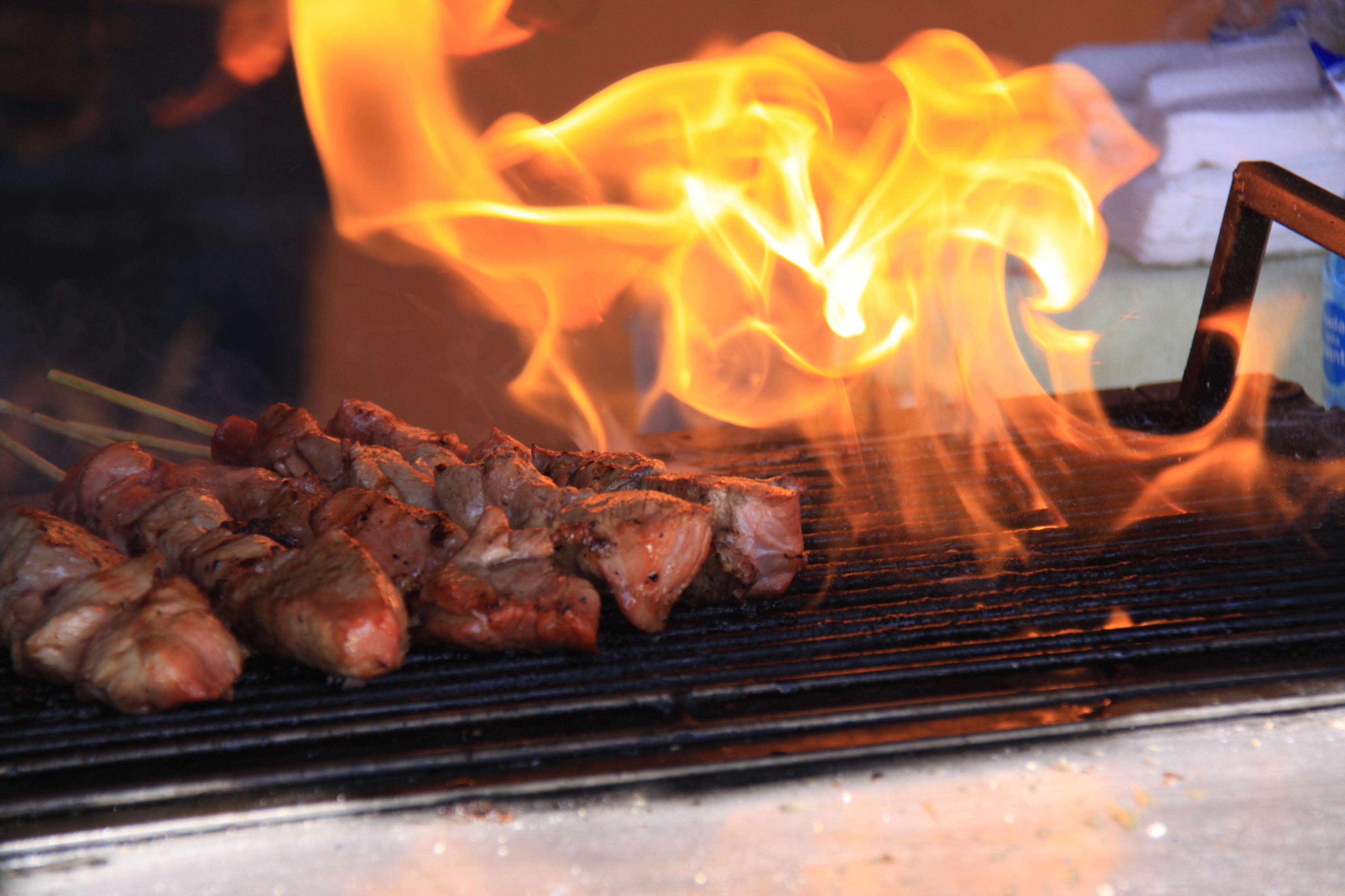 After passing by plantations, we were treated to fresh fruit at a local fruit stand, and Gary captured this photo of some delicious “meat” being grilled.