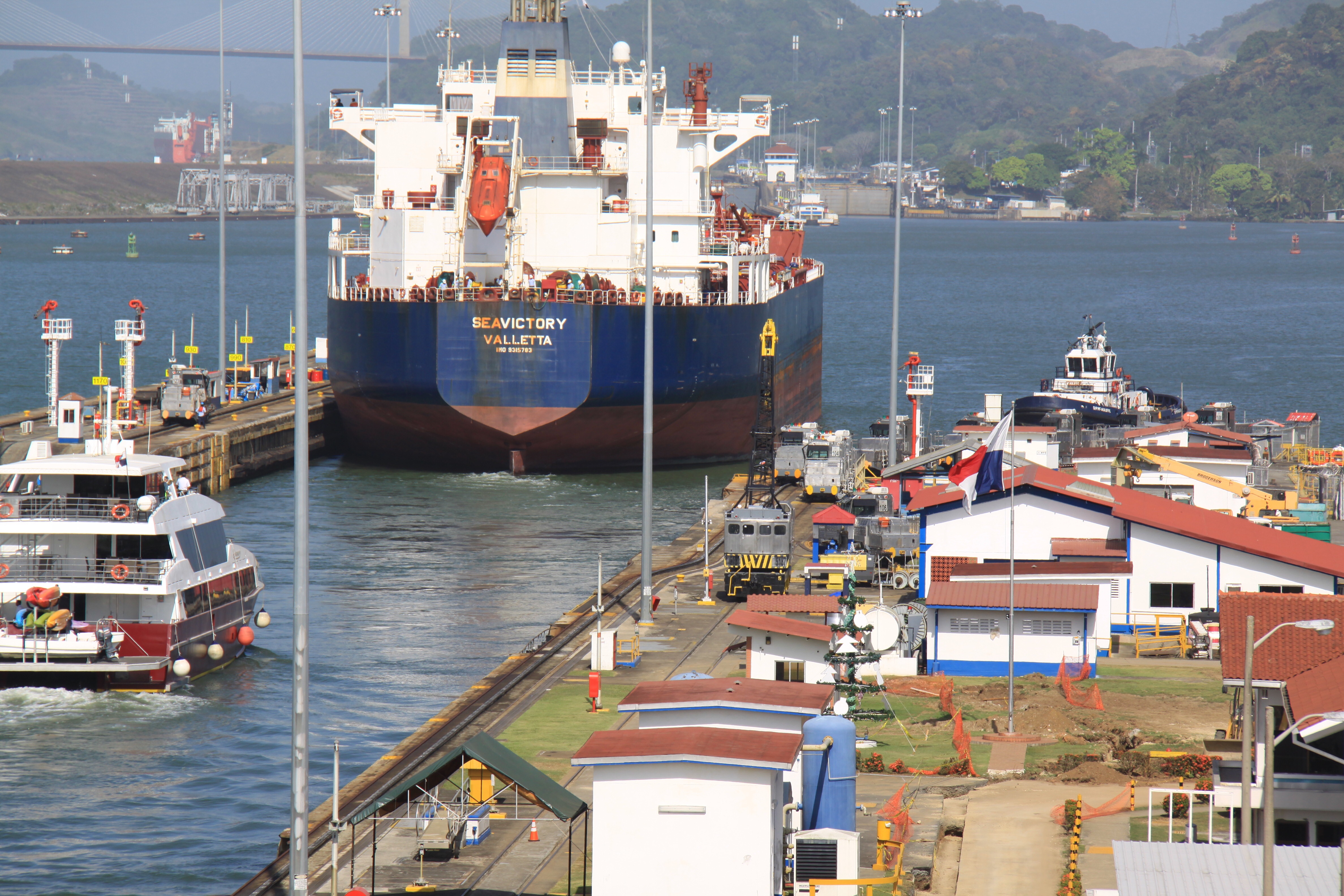 Here we were treated to a view of some ships passing through the Miraflores locks: some completing their transit from the Atlantic to the Pacific, and some just starting.