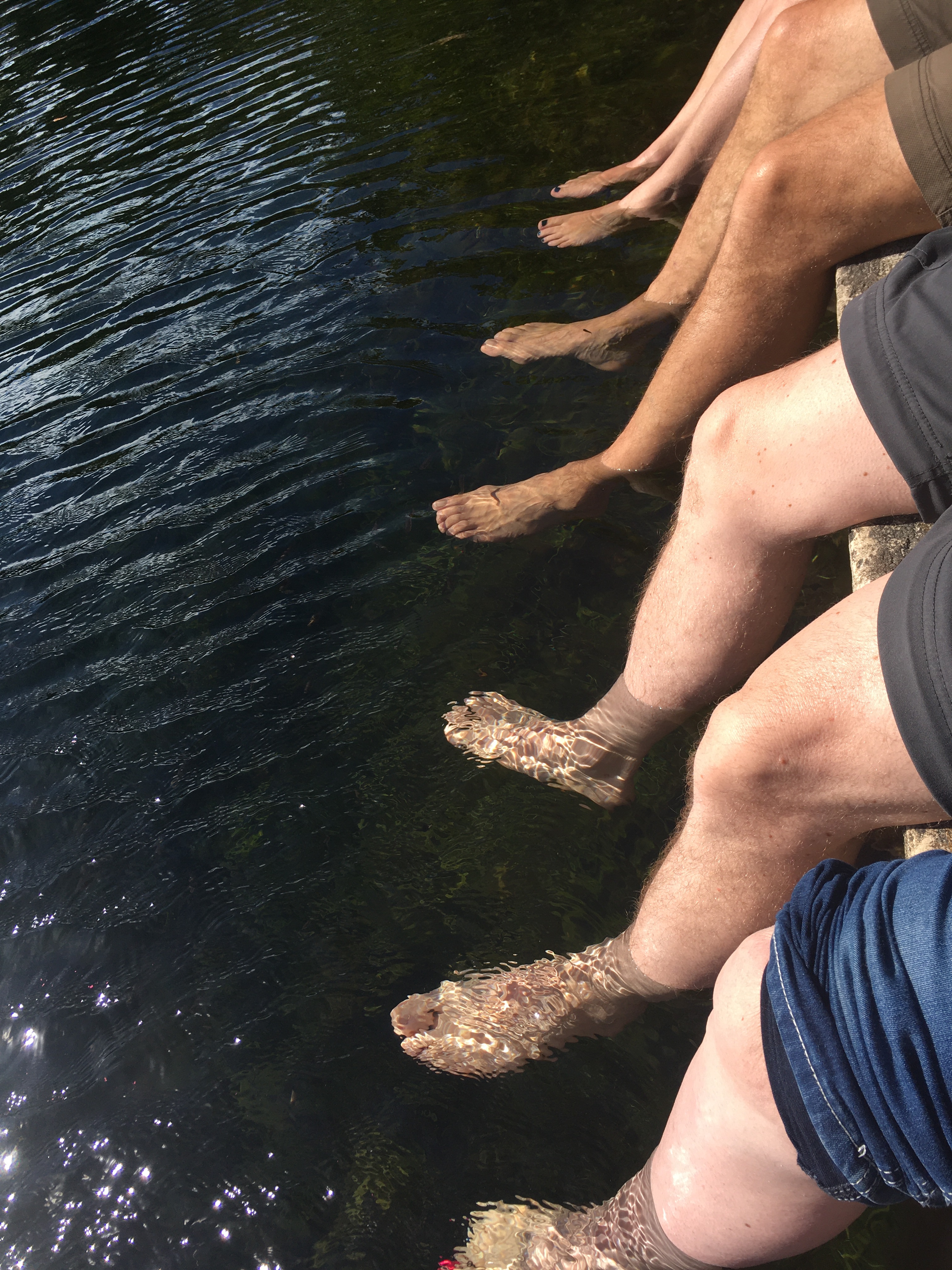 Tiny fish swarmed around our feet nibbling dead skin cells, and it felt like tiny electrical shocks. I highly recommend it!