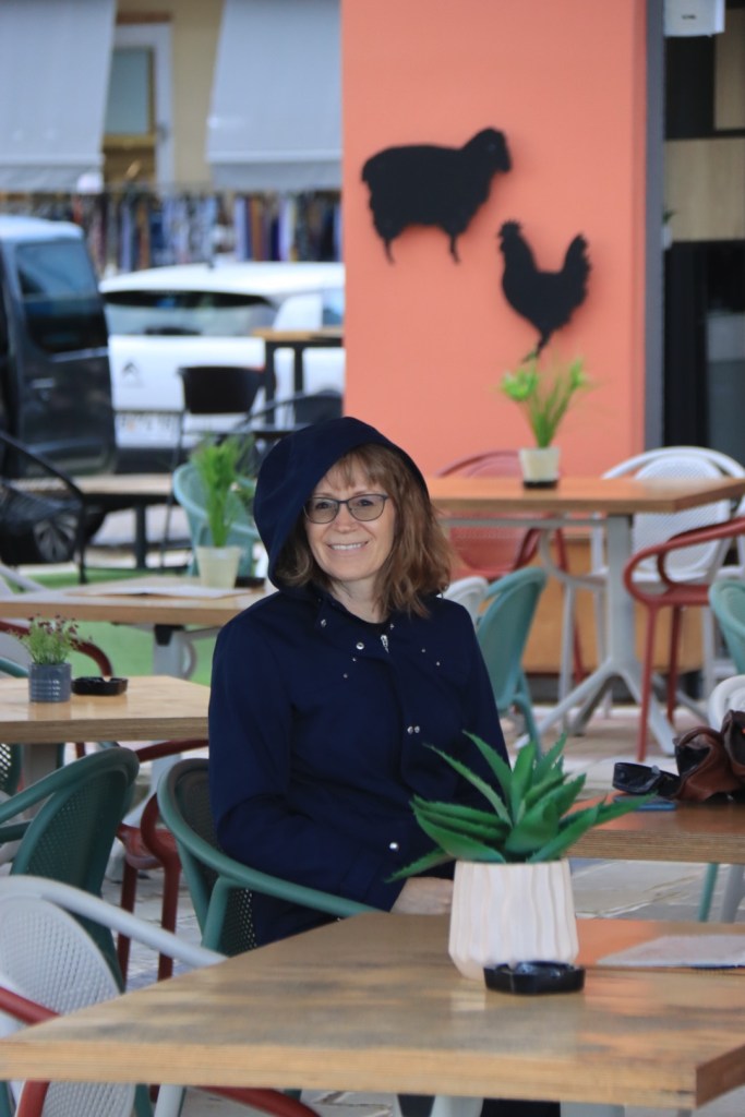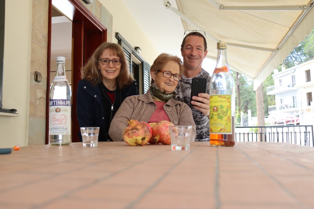 Further down the road, we were enjoying beautiful flowers and trees, and we decided to find a way to the beach. A lovely elderly lady told us that we could go through her yard, but then she asked us if we knew German. We said yes, and then she invited us in for coffee and a visit. That was a highlight. Georgia was so gracious, and so happy to have company. Her children operate a restaurant during the tourist season, but then they leave and come back again in the spring. Between Gary and I we managed to communicate, and for those of you who know that I do not drink coffee, I decided to drink the strong espresso, which she graciously added sugar to. She spoke very little English, but we had a lovely time.