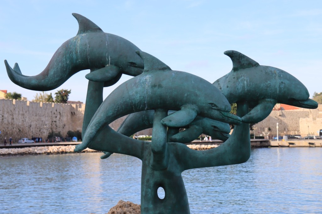 After walking along the boardwalk along the bay, we found the statue of the dolphins.