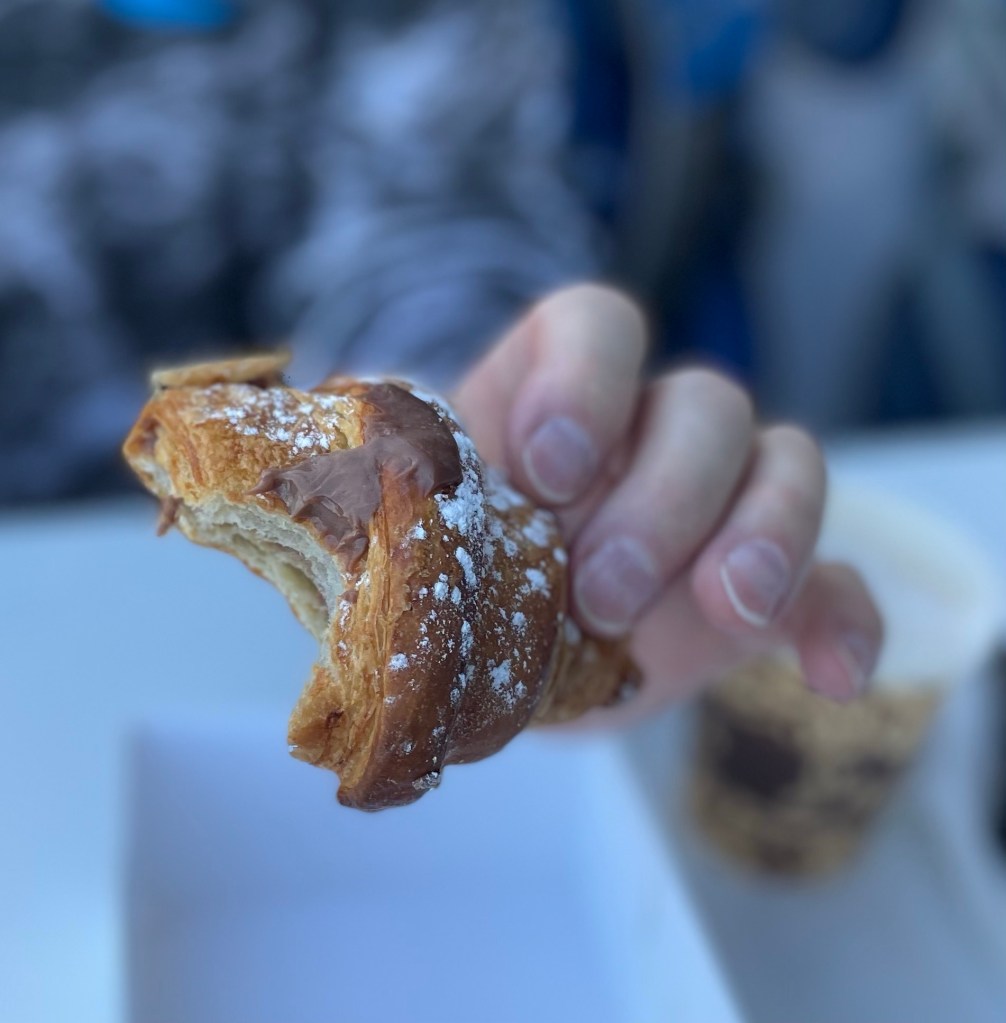 Since Rick’s wasn’t open, we settled for coffee and pastries at the L’Artisan bakery located beside the Gatsby restaurant across from the mosque. After ordering, we found that they only accept their Moroccan currency (Dirham) and no credit card payments. We didn’t have any, but an American couple sitting on the patio gave us 100 Dirham (10 USD) to pay for our food. We were grateful and had a nice chat before they headed on their way.