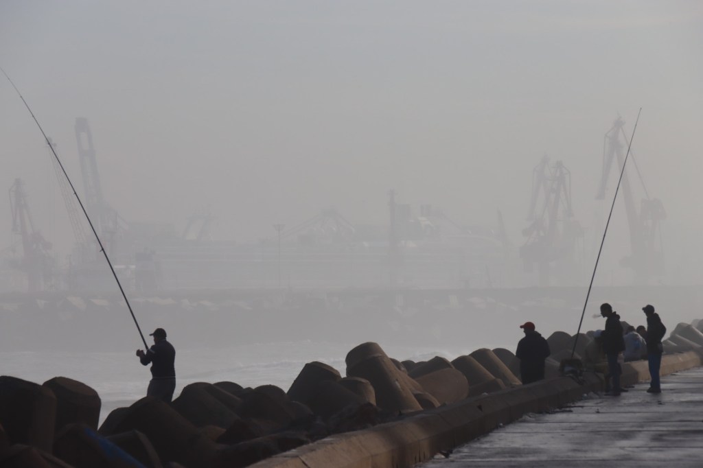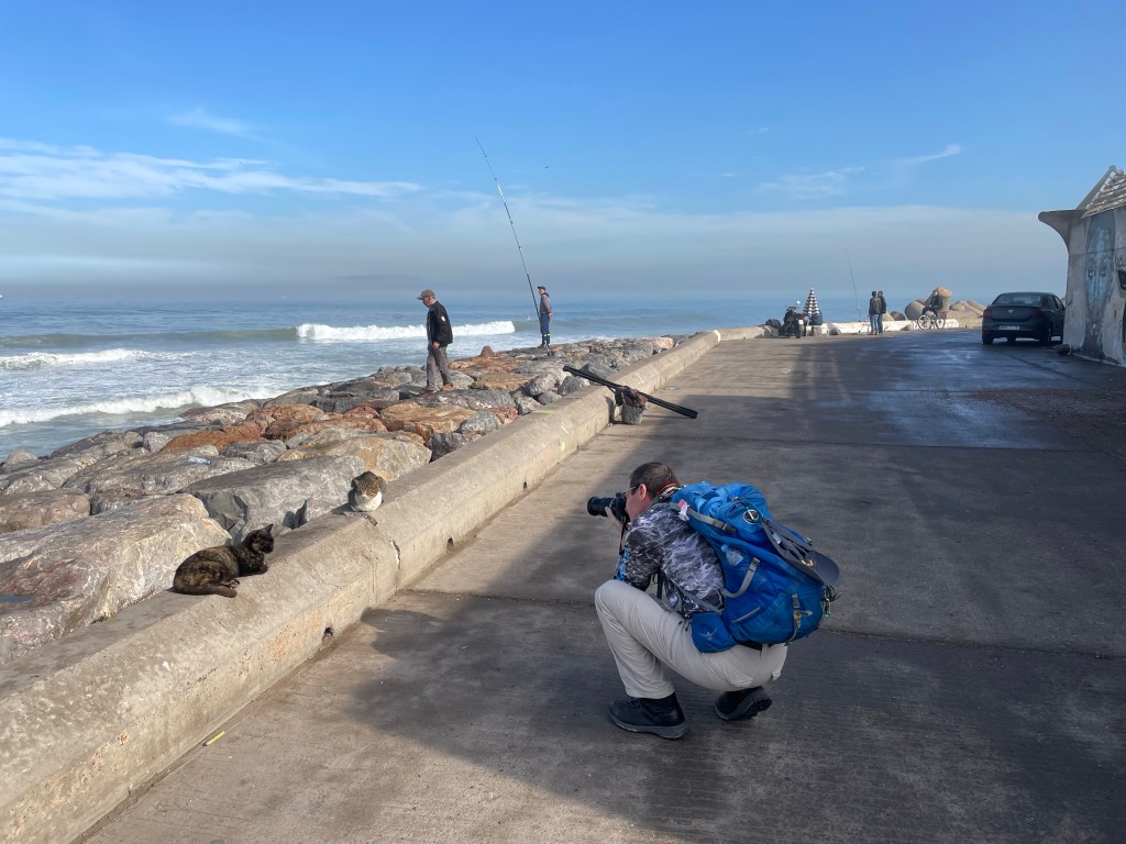 We walked back to the ship along the ocean road which reminded me of River Road in Medicine Hat. There were fishermen along the way, and, of course, Gary was checking out techniques and gear and cats.
