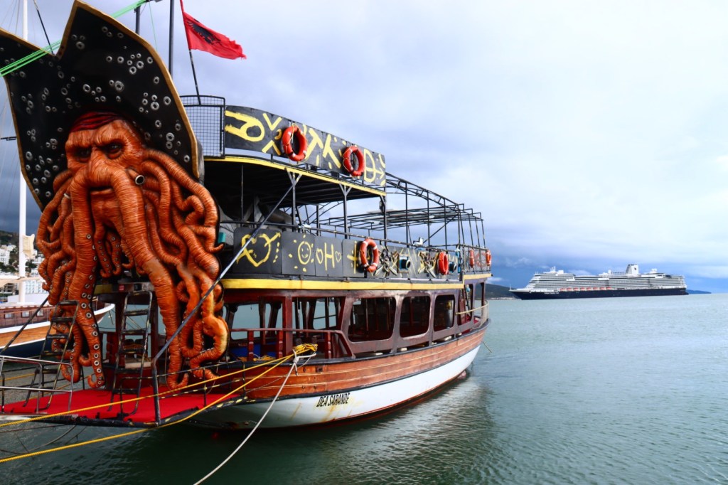 Last night we had our first bit of stormy weather on this voyage. Lightening lit up the skies and the waves lulled us to sleep. We were unsure if we would even go ashore this morning as the rain continued, but we took a chance and took a tender boat (lifeboat) to the city of Sarande.