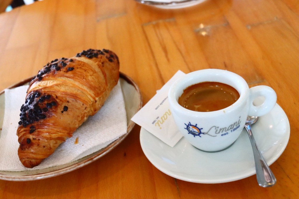 Gary found a lovely indoor ocean-view cafe and we enjoyed some espresso, (tea for me), a freshly baked chocolate croissant, and pistachio gelato. All four items came to about $8 Canadian which was the price of one coffee yesterday in Dubrovnik.