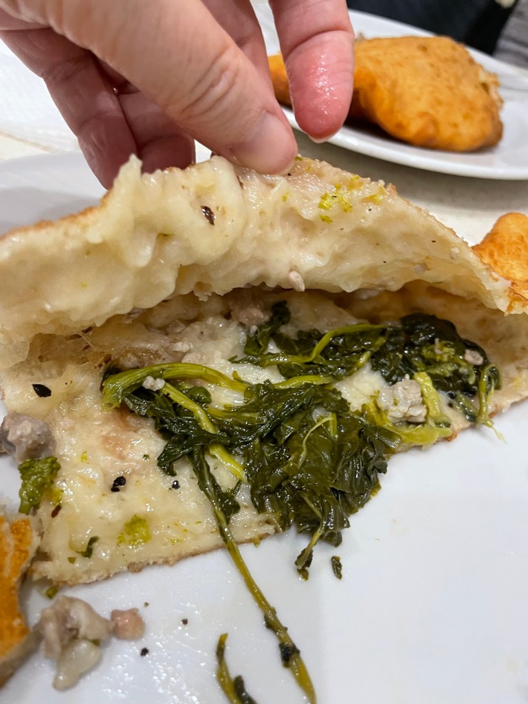 Friarelli is a bitter Italian leafy green, and provola is an aged mozzarella. It was quite tasty!