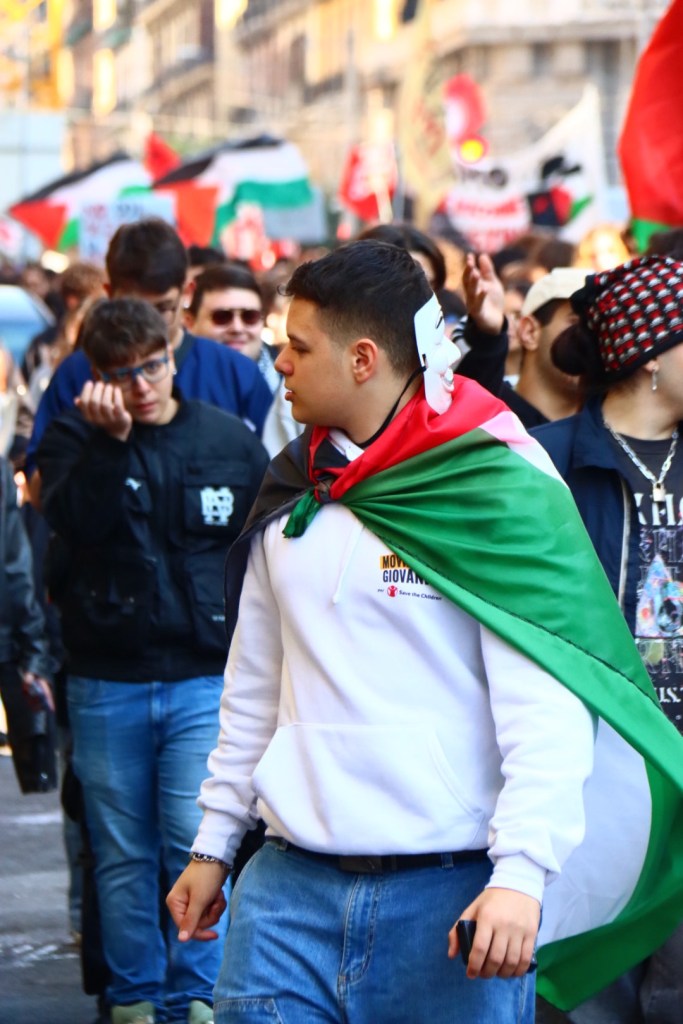 Although we didn’t understand what they were saying, they appeared to be marching in support of Palestine.