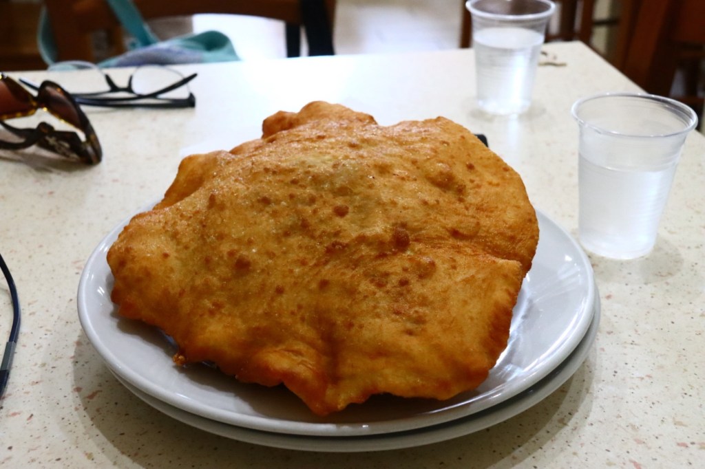Deep fried pizza with pork, friarelli, and provola filling