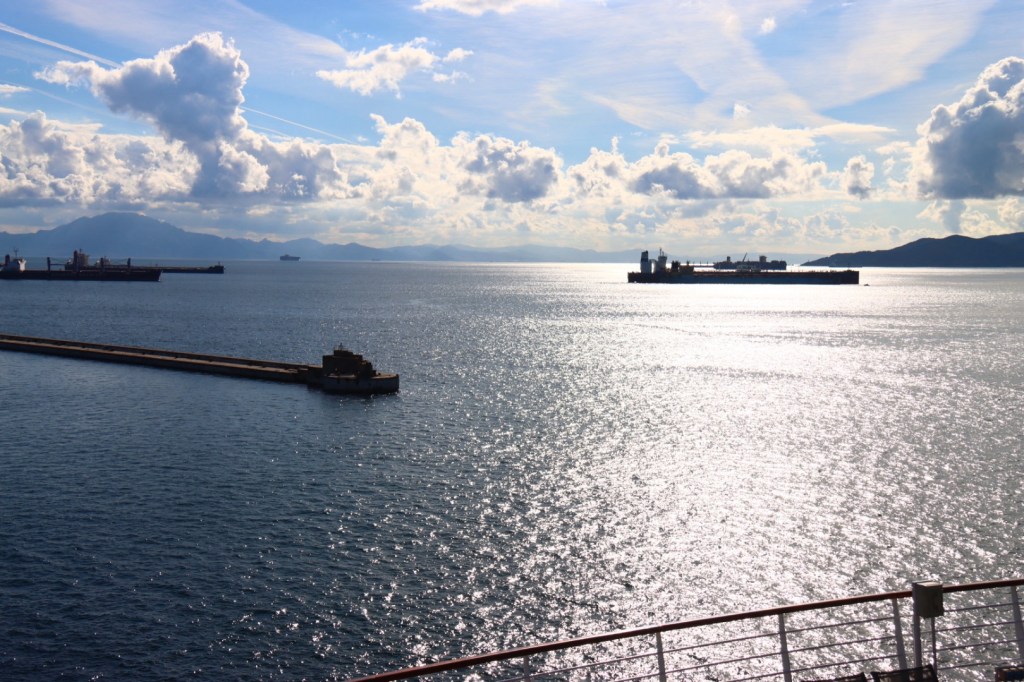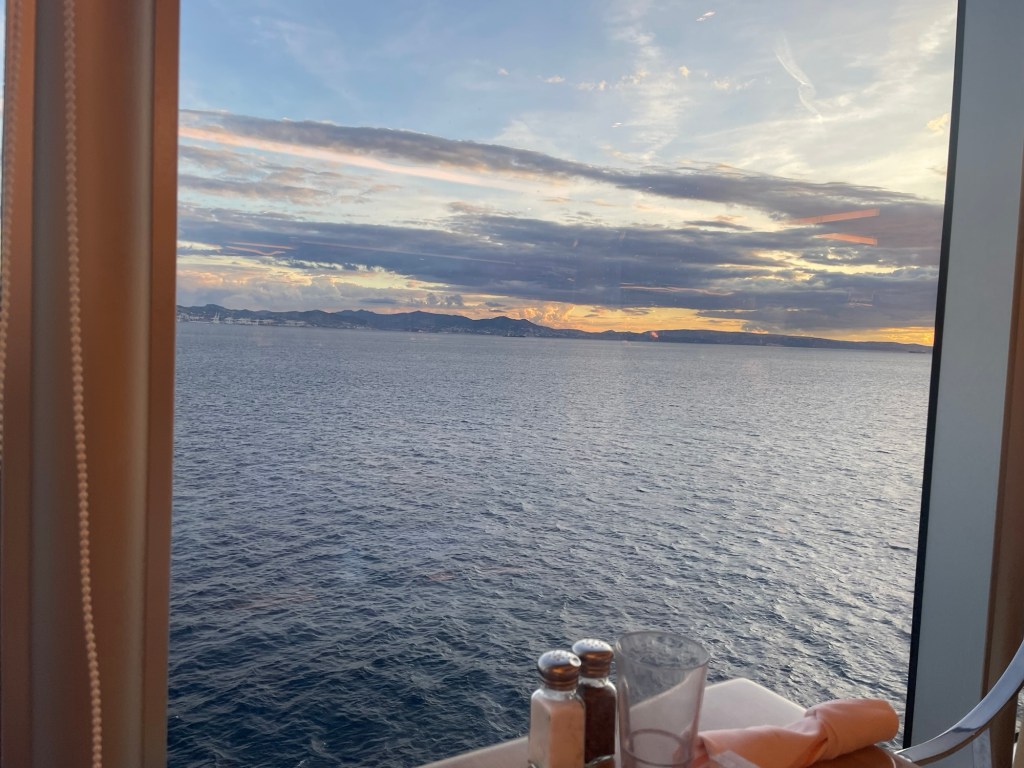 We returned to the ship, and then enjoyed a wonderful Mediterranean buffet as we made our way through the Strait of Gibraltar. This is the view of North Africa from our table.